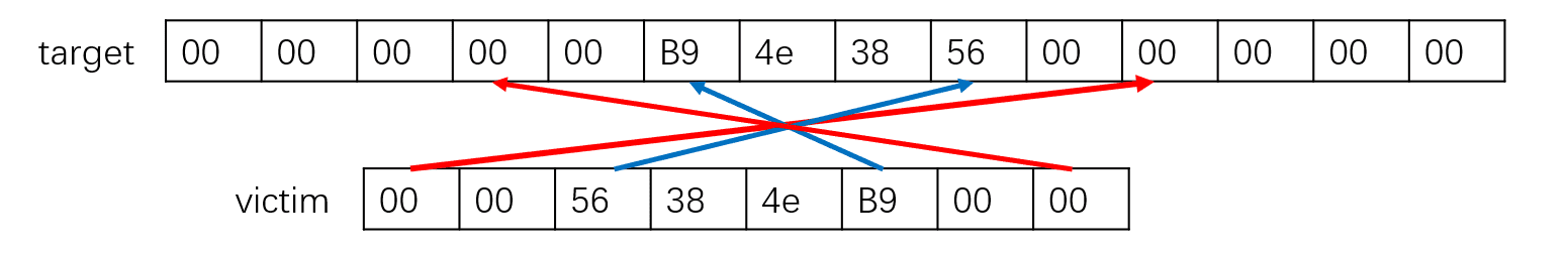 假设某个块放入到 largebin 中时,会把 target_addr + 3 修改成 victim 这个 libc 地址,为啥要 +3,可以看下面的图,相当于偏移写:
