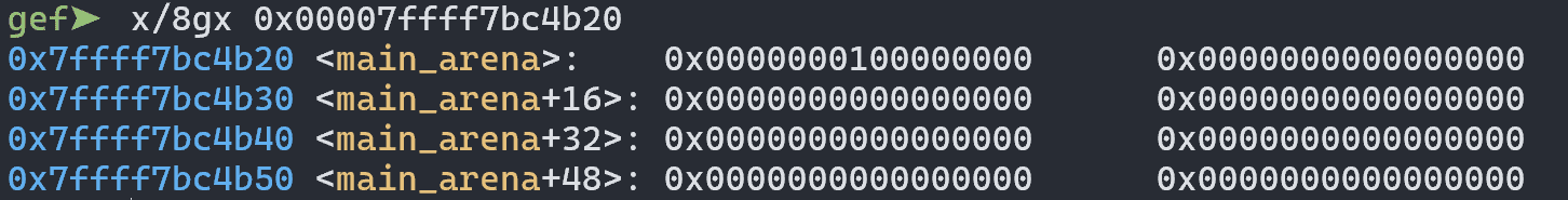 main_arena 的时候,next 指针就指向 main_arena,其内容如下: