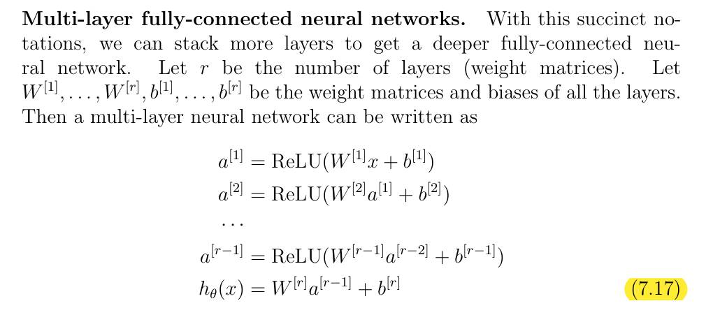- 从 7.2 节开始,首先是引入 activation functioin 这个概念,就是一个非线性函数而已,介绍了一个 RELU 函数,看到这里就可以打住了。