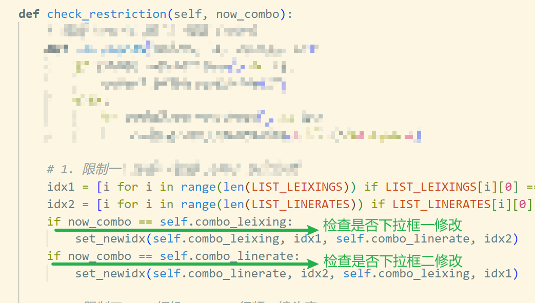 但是这样很乱,没法统一管理限制条件,此外每个下拉框都给一个触发函数,非常的丑。于是设置统一管理函数,即原来统一的触发函数中一开始进行检查: