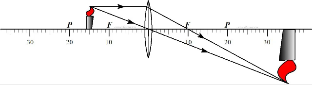 投影物镜本质也是利用凸透镜成像原理。即物体到透镜距离在 1 倍焦距到 2 倍焦距之间时,成像效果是倒立、放大的实像。