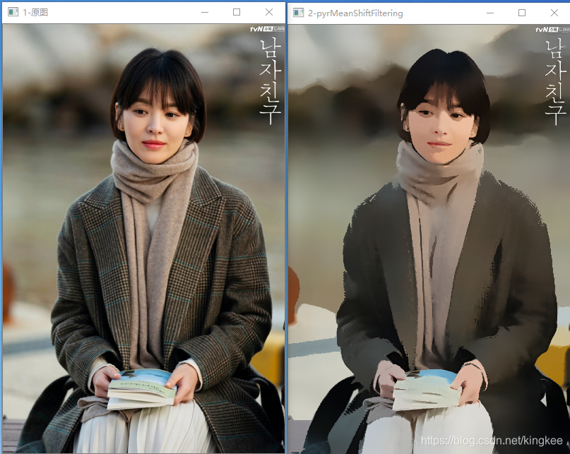 - pyrMeanShiftFiltering: 色彩上的的均值模糊(水彩画风格),图片(原文)
