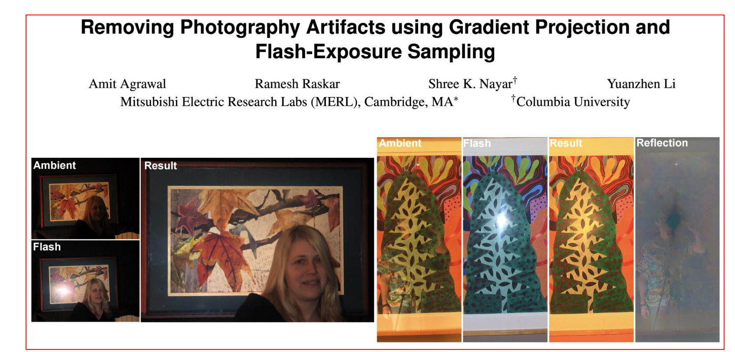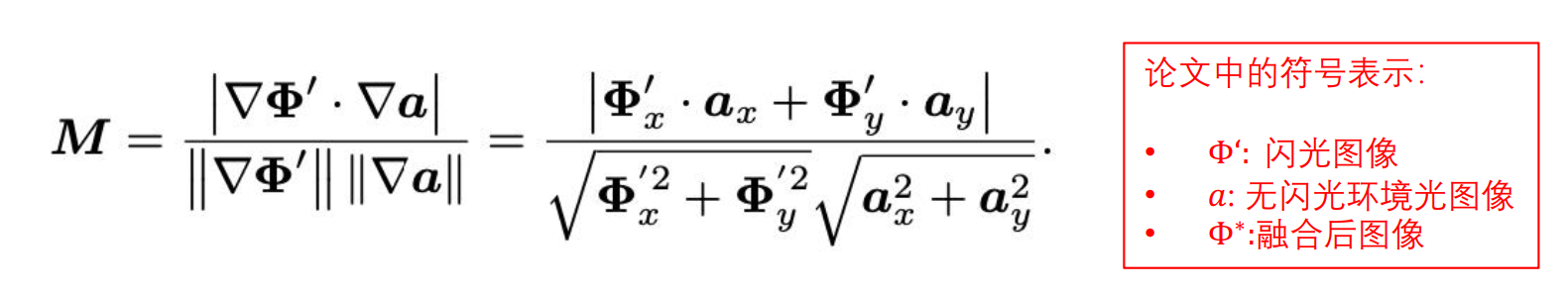 我们拿到两张图片后,计算各自的梯度。如上面所述,在非反射区域,梯度一致,此时更加相信闪光图;在反射区域,则更加相信非闪光图。