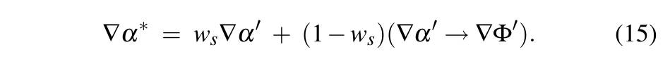 然后利用这种相关程度做一个加权求和,即越不相关我们就越信任非闪光图片的梯度: