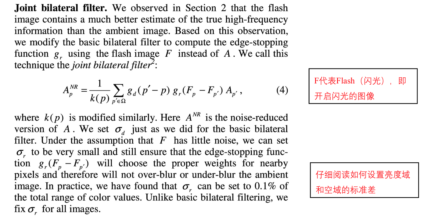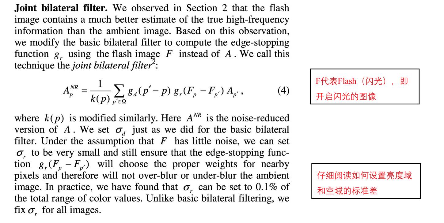 如下图,其实就是对非闪光的图片进行滤波时,用闪光的图片作为双边滤波的颜色依据。