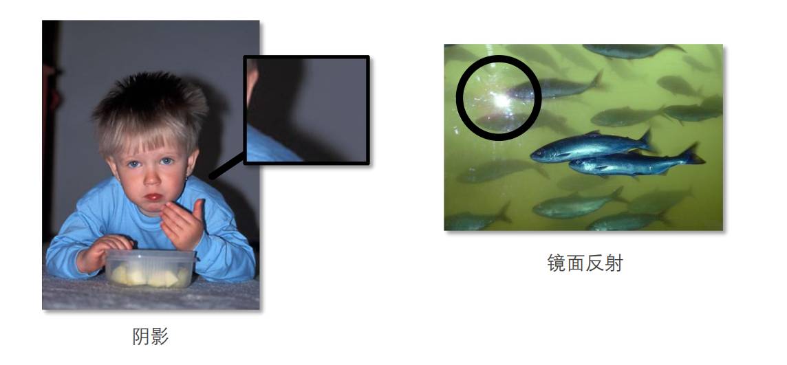 1. 高光不容易检测,比如下图中大的红圈是高光阈值较低时检测出的结果,小红圈时正确的高光检测结果,所以很容易阈值不对检测就不对。