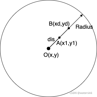 dis^2 = (x - x_0)^2 + (y - y_0)^2