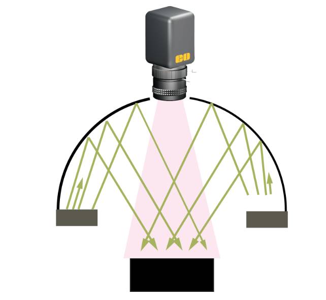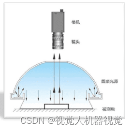 穹顶灯如下图所示,他是漫反射系统,能够很柔和均匀地照射物体,所以它很适合睾反射物体。