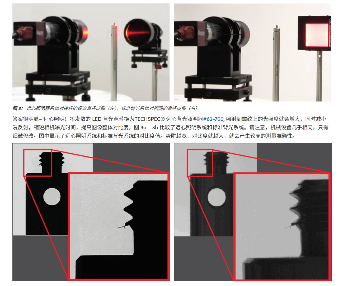 还不是很理解的一个照明方式,我现在的理解是它就是用远心镜头,形成了平行光。然后和另一侧的远心镜头配合,相当于光源始终垂直入射到镜头,这样边界会很清晰。