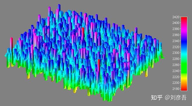 该图表包含35个不同亮度的“相机原始中性色”patch。从一个RAW照片文件中选择一个patch,我们分离了两个绿色raw通道中的一个,找到了光照最均匀的矩形区域(68 × 54像素:3672个“观测值”),并分析了它的分布。下图是3D中的样本像素值