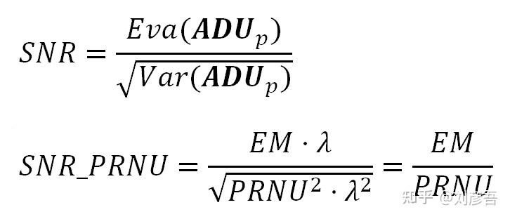 如果PRNU是传感器中唯一的噪声源,那么总ADU方差主要是上述方差的二次项。在这种情况下,信噪比为: