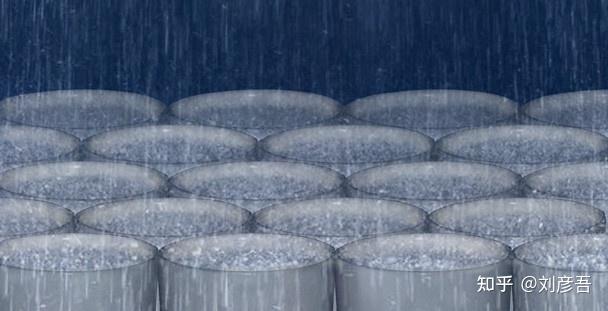 到目前为止,在我们的模型中,乍一看我们似乎还没有噪声的来源,其实我们已经有了,它是由“EL”表示的电子数。即使是在完全均匀的光照下,每个photosite的电子数也不一样。光子数是一个随机变量而不是一个常量;图像表面上的这些不同的值就是所谓的光子散粒噪声。为了理解这一点,让我们想象许多相同的杯子放在相同的雨下,雨结束时没有杯子溢出