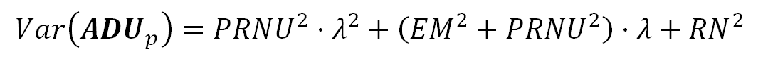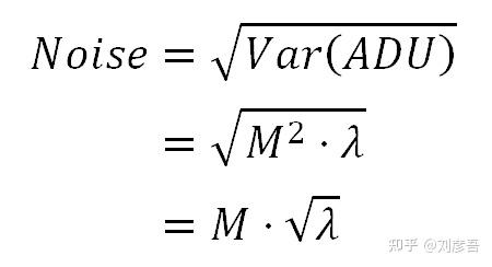 三个噪声源(用粗体字体表示)彼此独立。这将允许我们使用更简单的公式来得到期望值和所得ADU的方差。