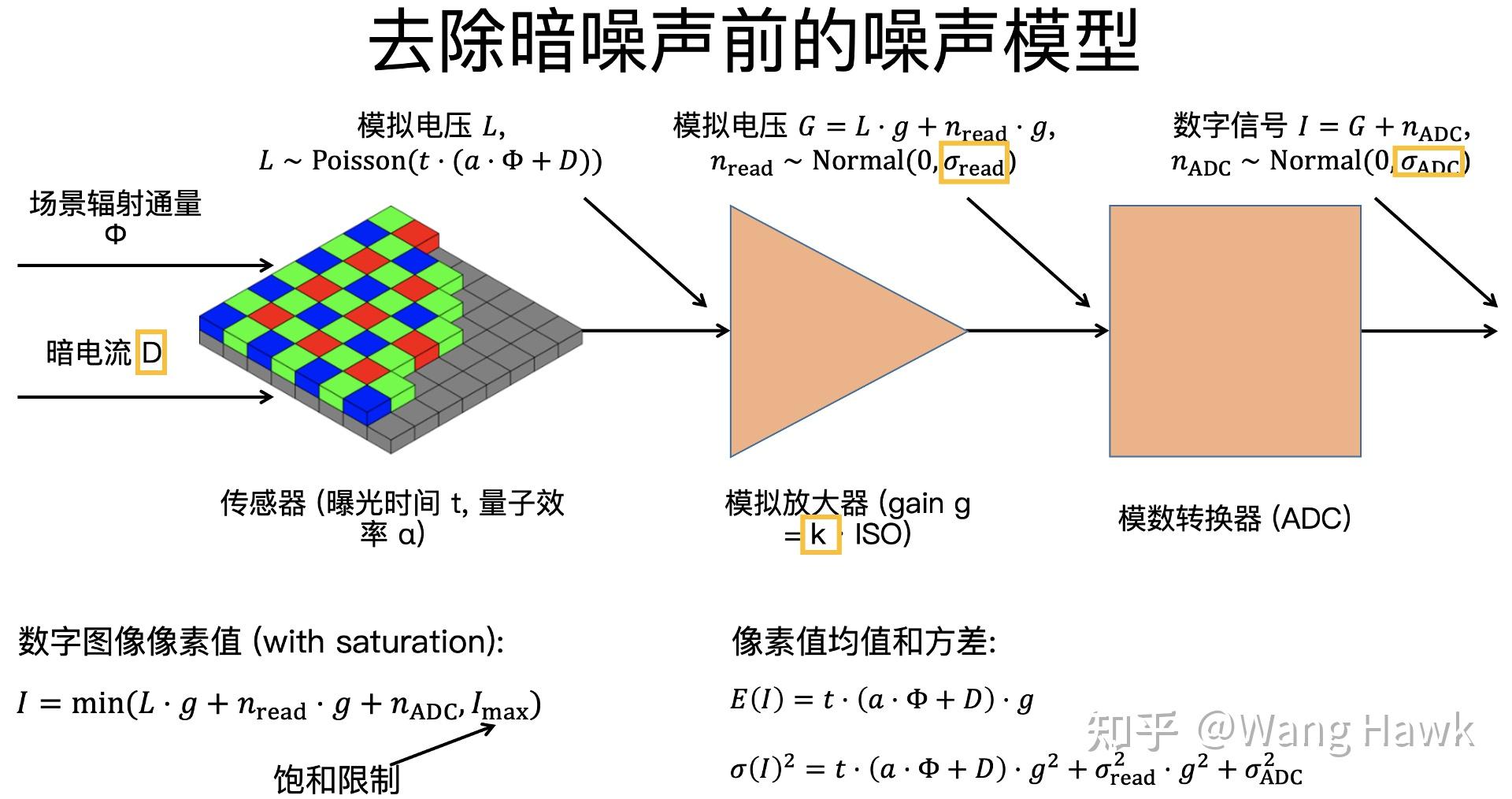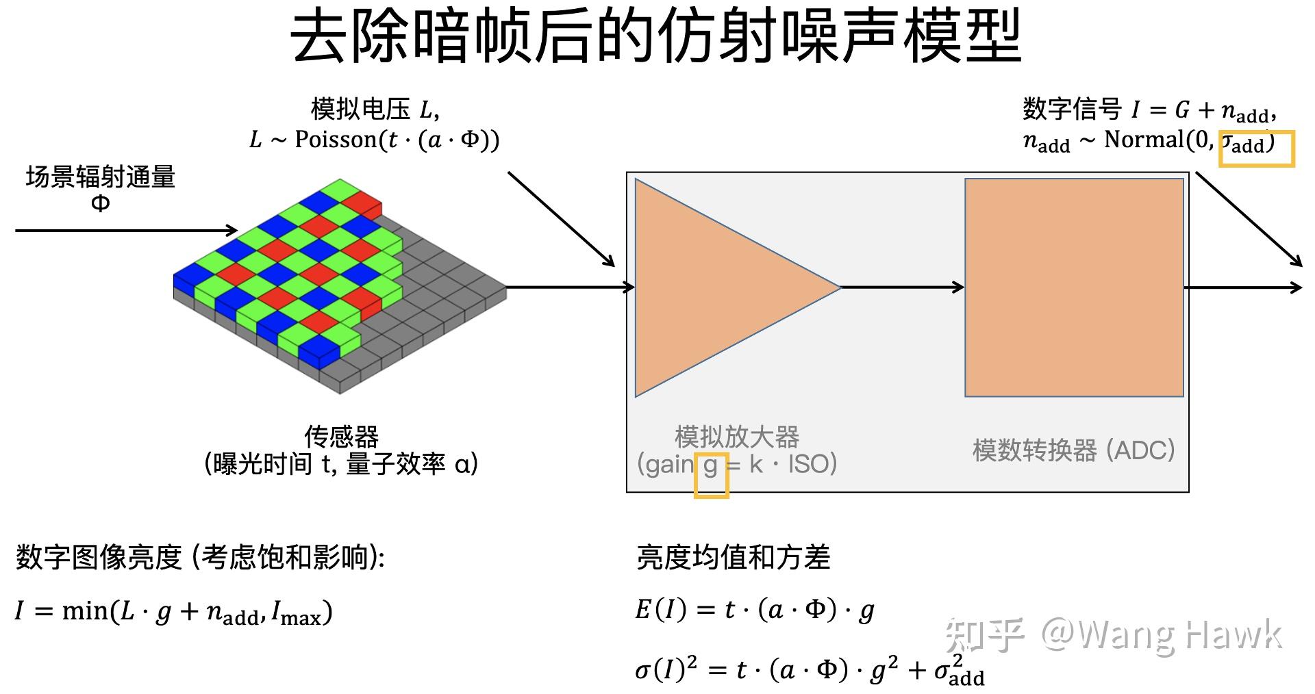 这样,消除掉暗噪声的相机噪声模型就变成了这样
