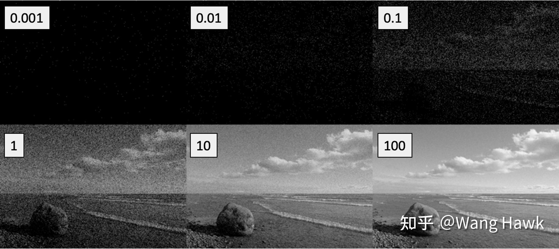 反过来讲,如果曝光时间t很小,或者场景很暗时,光噪可以忽略,加性噪声占主导,此时