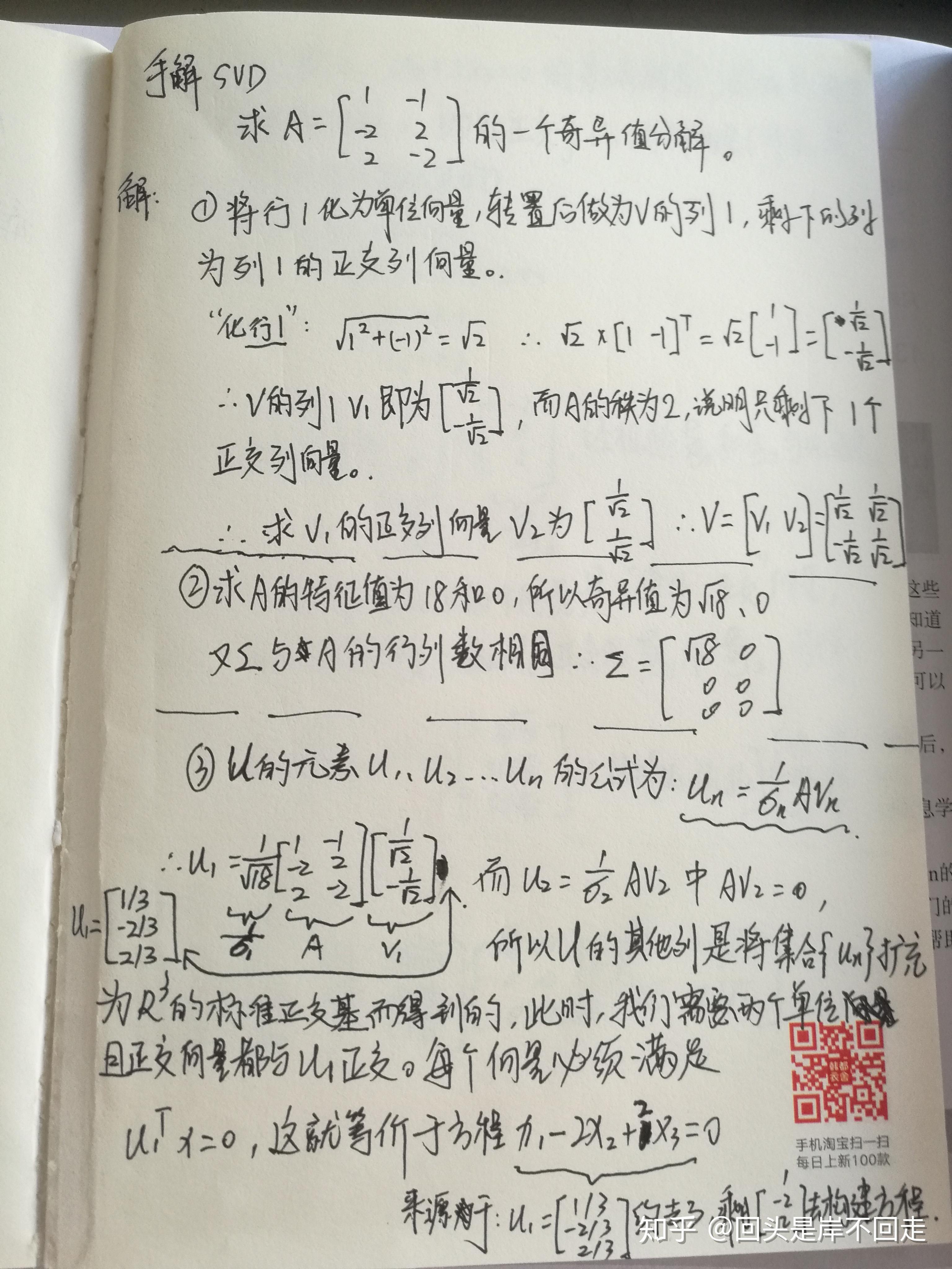 你好,我想问一下,在手算时分别用AAT和ATA的特征向量得到U和V,有没有可能不用检查就能保证最后得到的分解没有正负号的问题,我感觉这种方法是不是本质上就有问题啊,U和V是不是不能单独求解,他们应该是相互关联的吧