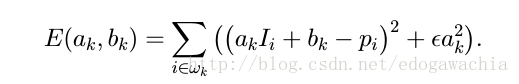 求解以上方程得到a和b在局部的值,对于一个要求的pixel可能含在多个window中,因此平均后得到: