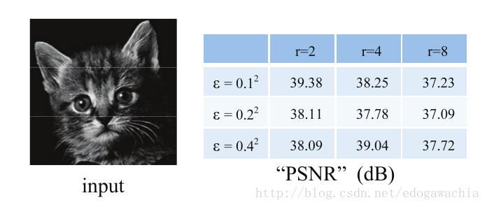 为了展示GF和BF的效果的相似性,将同一图像经过GF和BF滤波后,计算两个输出的“PSNR”,(It is often considered as visually insensitive when the PSNR >= 40 dB) 。