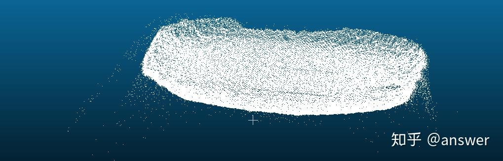 深度相机畸变有两种,第一种是与RGB相机相同的畸变,如上面介绍的畸变一样,矫正的是二维平面的畸变,矫正方法可以使用棋盘格,为了清楚观察检测到棋盘格角点,使用深度相机采集的红外激光图像,红外激光图与深度图是相匹配的,例如微软的kinectv2相机采集的红外图与深度图。第二种畸变是深度畸变,如果使用深度相机在一个平面上采集图像,理论上深度图像每一个像素值大小都相等,采集的是一个平面,深度图的像素值大小代表深度。但实际采集的深度图不平整。深度图边缘畸变较大,生成点云如下图所示。